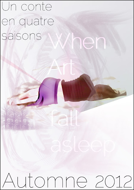 When "art" fall asleep[A fairy from imagination only].Autrefois, les contes avaient pour fonction de narrer le réel en déguisant les éléments du récit de manière à ne pas choquer et à permettre au travail de deuil, essentiellement de se faire à l'abri de l'inconscient.Nous vivons une époque difficile : ce que l'on nomme vite la modernité, pour peut-être éviter de regarder à l'intérieur ce que signifie ce terme et éviter peut-être de se poser trop de questions sur ce que la modernité est vraiment.La modernité m'évoque les reflets, les miroirs, et les écrans, des surfaces lisses, sans accrocs ni ombres. D'ailleurs, l'absence d'ombres dans la photographie moderne m'a toujours semblé être un problème. Le réel contient des ombres. Tout ce que nous regardons est soumis à la lumière naturelle, et comme tel sujet à modifications de formes, d'arrondies, de profondeurs, de teintes plus ou moins sombres ou lumineuses.L'endroit où rien ne bouge, (dont les ombres sont absentes à cause de la lumière crue) est assez souvent notre dernier lieu, celui où nous resterons pendant de longues heures dans l'attente d'un examen puis d'une transformation avant la mise en bière. Les lieux industriels, les entreprises, les hangars éclairés au néon, les hôpitaux où effectivement les examens de tous ordres sont habituels sont des endroits qui parlent de la société moderne, de la société actuelle, de celle dans laquelle nous vivons toutes et tous. L'oeil du néon qui éclaire ces endroits est morbide, vide,. Il semble observer et scruter chacun, mettant en avant les détails, qui, exagérément éclairés, se retrouvent projetés au premier plan, choquent et agressent le regard. La vulgarité née du déséquilibre et de l'absence de hiérarchisation. Les formes que cette lumière sans complaisance écrase et amplifie tombent en disgrâce."When art fall asleep" serait le titre d'un conte qui évoquerait la douceur de la lumière automnale, la beauté des roux, des ocres et des verts, la luminosité dorée, "Art" serait le personnage principale, une femme certainement, "Art" pour arthémis, qui comme dans "sleeping beauty" se serait endormie il y a longtemps et que rien ne réveillerait. Cela se passerait certainement dans notre Siècle, le XXIème.