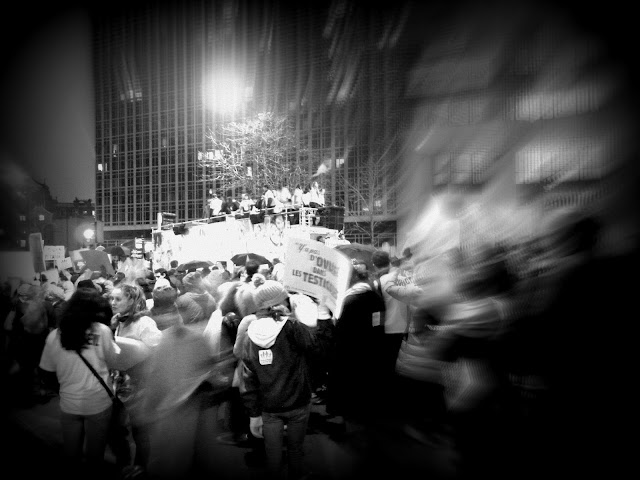 Le hasard faisant les choses comme il le souhaite, dimanche 13 janvier, marchant d'un pas gai et alerte malgré la température, je croise donc une manifestation. N'ayant pas, pour des raisons inhérentes à la condition humaine eu le temps de suivre l'actualité de notre valeureux pays la France , j'ignorais un peu contre quoi cette manifestation avait lieu. La veille il est vrai que je croisais par hasard et en allant cette fois-ci chercher une baguette de pain une autre manifestation que j'identifiais assez rapidement grâce à la lecture des pancartes contre l'assassinat de trois femmes kurdes engagées dans la lutte pour la naissance d'un état Kurde. En l'absence d'appareil photo je fus donc obligée de zapper celle-ci.Pas de souci me dit en passant le hasard "Tu te rattraperas demain!" ce qui fut fait le lendemain donc et à ma grande suprise!Manif pour tous! donc dimanche en 13. Quelques photographies plus tard, je me demandais brièvement quelle était mon avis sur le sujet, étant entendu que je ne manquerai pas sitôt le temps pour le faire revenu de faire une note sur le sujet ici même : donc pour ou contre la loi en faveur du mariage pour tous?Traditionnellement et habituellement je suis plutôt portée vers la défense des homosexuels. Non que je le sois, mais plutôt par une sorte de manie plutôt étrange (te diras-tu lecteur) d'avoir toujours pris la défense du plus faible, du moins nombreux, de l'exclu de la société, ou du marginal, de la veuve et de l'orphelin (?), aussi pourrais-tu penser avec un brin de cynisme dont je pourrais entendre le grincement de dents d'ici, si je m'attardais un peu? Oui, oui. La veuve et l'orphelin aussi, le pédé ou la gouine, le roms ou l'afghan de passage, les femmes seules, les retraités qui ne mangent pas à leur faim, les enfants qui sont pris en otage par un parent pendant que l'autre souffre le martyr, les immigrés de trente ans qui continuent d'être sous les feux d'un racisme congénital malgré leurs trente ou quarante années de cotisations, leurs enfants intégrés qui parlent français correctement (et qui même travaillent, exceptionnel non?) et que certains seraient tentés de continuer à traiter d'immigrés?!, les manouches du coin que l'ont traite toujours de voleurs de poules, tout ça, tout ça....toutes les injustices que l'on voit passer soit dans les faits divers soit dans nos quotidiens et qui franchement ont toujours le don d'agacer.Rien que de très normal penseras-tu à nouveau! Du boboïsme pas très engagé, tiède comme de l'eau croupi, fadasse et qui serait tenté par "l'enfonçage" de portes ouvertes? Un truc qui viendrait des années coluche, pas très intéréssant politiquement et certainement moins roboratif qu'une bon discours Sarkoziste!Certes, mon ami lecteur qui doit se nourrir au sein des présentateurs télé (pouah mais pouah alors) amoureux béats d'un sarkozisme de combat, viril et engagé contre tout ce qui tente de s'opposer à la toute puissance de l'argent et au pouvoir de ceux qui le détienne donc, il n'empêche que chacun suit le cours de pensée qu'il souhaite et que ma façon de pensée ne s'est jamais occupée de ceux qui donnent les coups mais plutôt de ceux qui les recoivent et crois moi, mon bon lecteur, de ce côté-ci de la cognée il y a beaucoup plus à faire et l'on se sent souvent bien plus utile, moralement s'entend.Donc disais-je habituellement et traditionnellement, il m'a toujours semblé que plus les droits accordés aux homosexuels étaient nombreux mieux c'était, c'est un peu la même chose que les droits accordés aux femmes vu le nombre de fois où ils sont bafoués mieux vaut ne pas hésiter à légiférer au cas où il viendrait l'idée à quelqu'un de les appliquer, cela nous créerait de petits miracles sans avoir eu besoin de déranger Jésus, ce qui est toujours une bonne économie. (amen)Sauf que, dans le cas précis je me suis soudain vu changer d'avis. (tadam!)